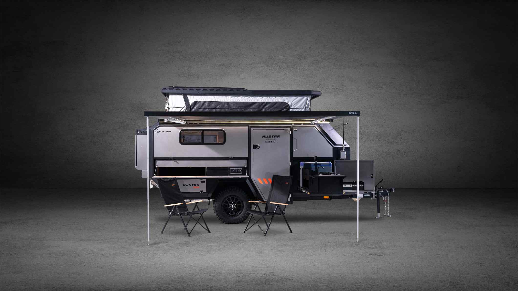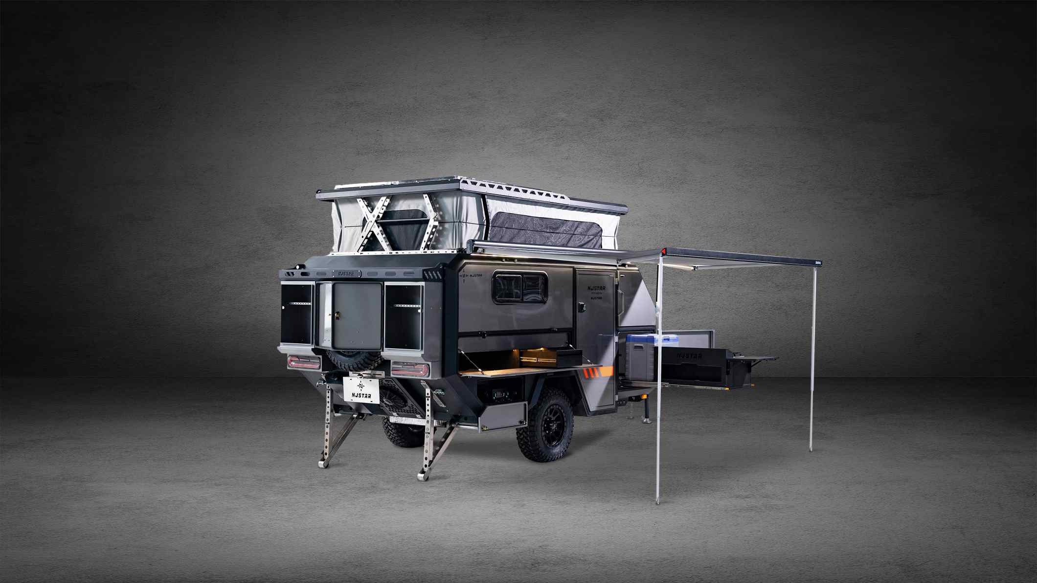 Il nuovissimo NJSTAR Commander è costruito per famiglie e avventurieri che desiderano la vera libertà fuoristrada. Il suo design pop-up da 18 piedi combina una forte capacità off-grid con un'ingegneria robusta e focalizzata sull'utente, rendendo i viaggi impegnativi comodi e senza sforzo.